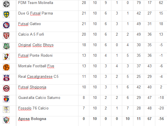 La ripresa sarà purtroppo una lenta agonia per Aposa, che sostituisce il portiere Masella con Arthur, ma il secondo tempo inizia subito con il gol di Di Mauro dopo 27 secondi, Alioshi prova ad iscriversi sul tabellino dei marcatori, ma trova Arthur a sbarrargli due volte la strada. Benatti ed El Madi trovano altre reti, il primo con un bel tiro da fuori, il secondo con un pallonetto morbido sotto la traversa. Riceputi, Navarro e Gardini cercano il terzo gol al 5’ ma senza successo. Riceputi svirgola e rischia l’autogol, sugli sviluppi del corner ancora Benatti ci prova due volte ma senza riuscire a segnare. Iamonaco salva poi sulla linea un tiro di Salerno, ma Hdioued trova la rete pochi secondi dopo, con un tiro che finisce sotto le gambe di Arthur. La disfatta prende proporzioni sempre più ampie: Di Mauro e Hdioued vanno ancora al tiro, respinti da Arthur, poi una palla persa in attacco porta al contropiede chiuso da Bruno Salerno. 20 secondi dopo arriva un’altra azione in fotocopia con palla persa e Salerno che insacca ancora da pochi passi. Passano altri 15 secondi ed è sempre lo scatenato Salerno a segnare su assist di Hdioued il suo quinto gol personale che vale il 15-2 a metà ripresa. Braccio sfiora il gol, con un bel tiro deviato in corner; poi El Madi ha due occasioni per rimpinguare il bottino ma viene chiuso dalla difesa poi da Arthur. Il timeout di Aposa al 12’ non sortisce effetti. El Madi ci prova ancora, poi Drago trova la deviazione vincente. Entra anche il veterano Tol Culi, 52 anni, che ci prova con una conclusione larga. Zazzetta e Gardini sono gli ultimi a cedere per Aposa, ma il gol non arriva nella ripresa. Dopo diverse occasioni fallite, lo scatenato El Madi riesce poi a trovare il suo quinto gol personale, come il compagno Salerno, chiudendo con un bel piatto da sottomisura. Anche Kuli vuole segnare, provando un paio di conclusioni, poi Navarro ci riprova per Aposa. Ancora El Madi prova un’azione e viene atterrato in area: il rigore sembra netto, ma gli arbitri sorvolano e non concedono il penalty. Arriva poi il 18 gol ad opera di Hdioued, che firma la sua tripletta, poi negli ultimi due minuti provano a segnare gli unici ancora non iscritti al tabellino di Molinella come Alioshi e Tol Culi. Ci riuscirà proprio Culi, a 5 secondi dalla fine, a realizzare il gol del definitivo 2-19 con un’azione di forza.